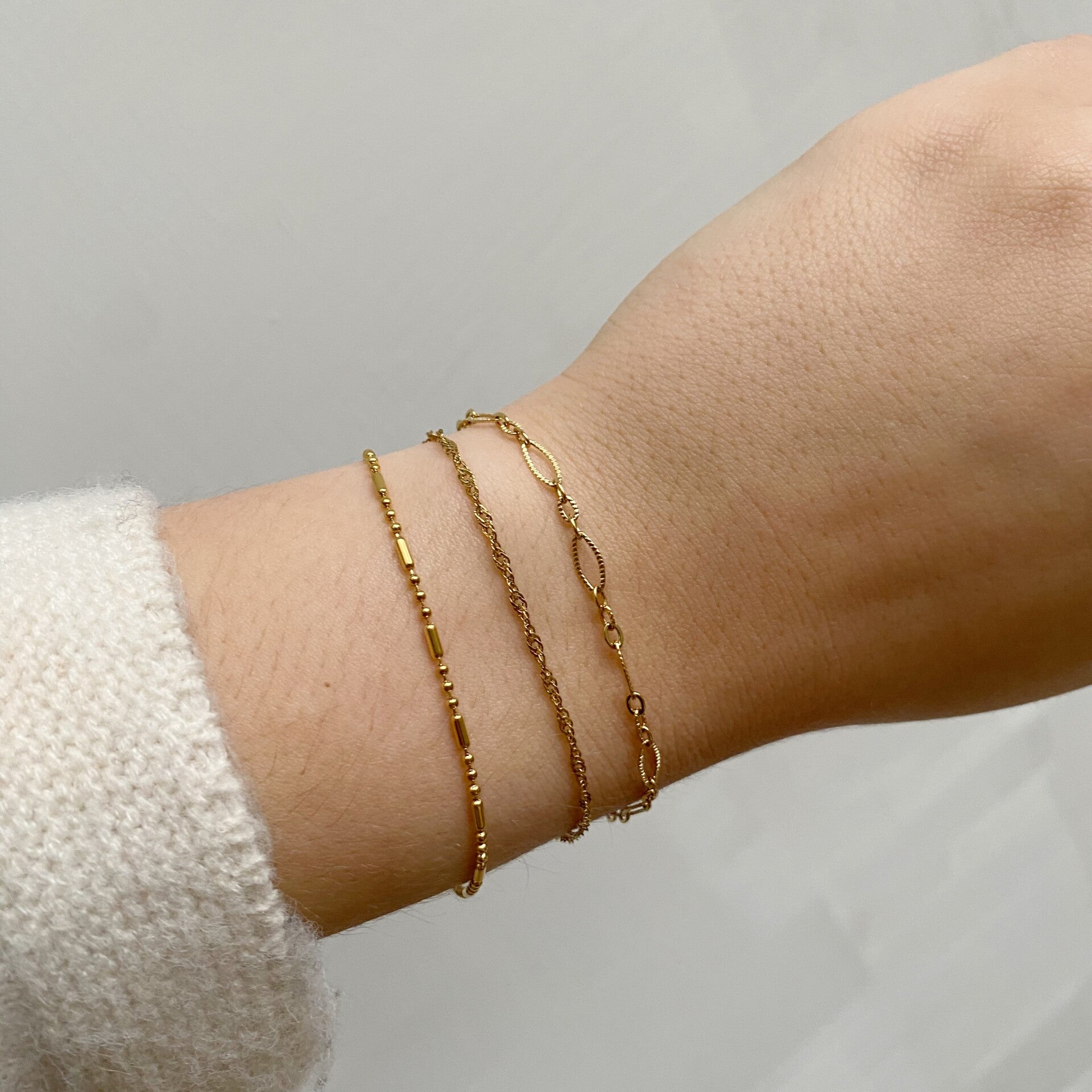 de armband is 17 cm lang met een verlengstuk van 3 cm.