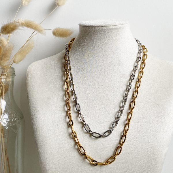 Deze ketting is gemaakt van stainless steel metaal, hierdoor zal de ketting niet afgeven of verkleuren.